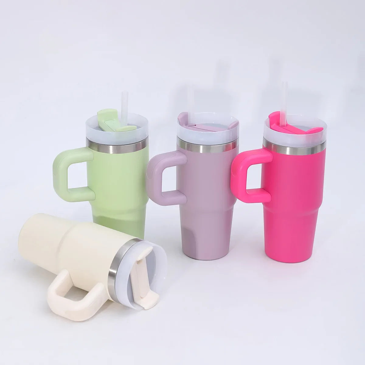 Keep your drinks at the perfect temperature for hours, whether you're commuting, at the office, or on an adventure. This durable stainless steel tumbler is built for daily use with a convenient handle and a sip-through straw.