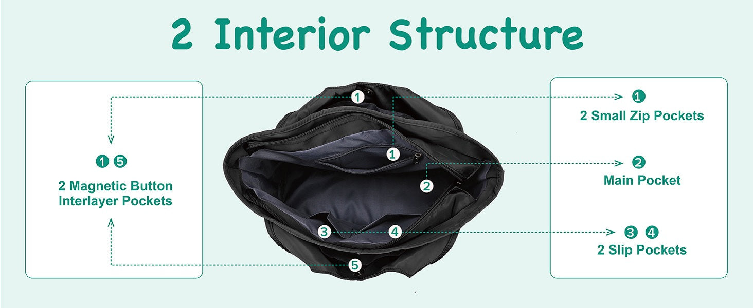 - Capacity: Multiple layers and pouches are convenient to put enough stuffs. zipper pocket, mezzanine bag, cell phone pocket, document bag, keeps your items security.A waterproof pocket in the bottom to hold your umbrellas.